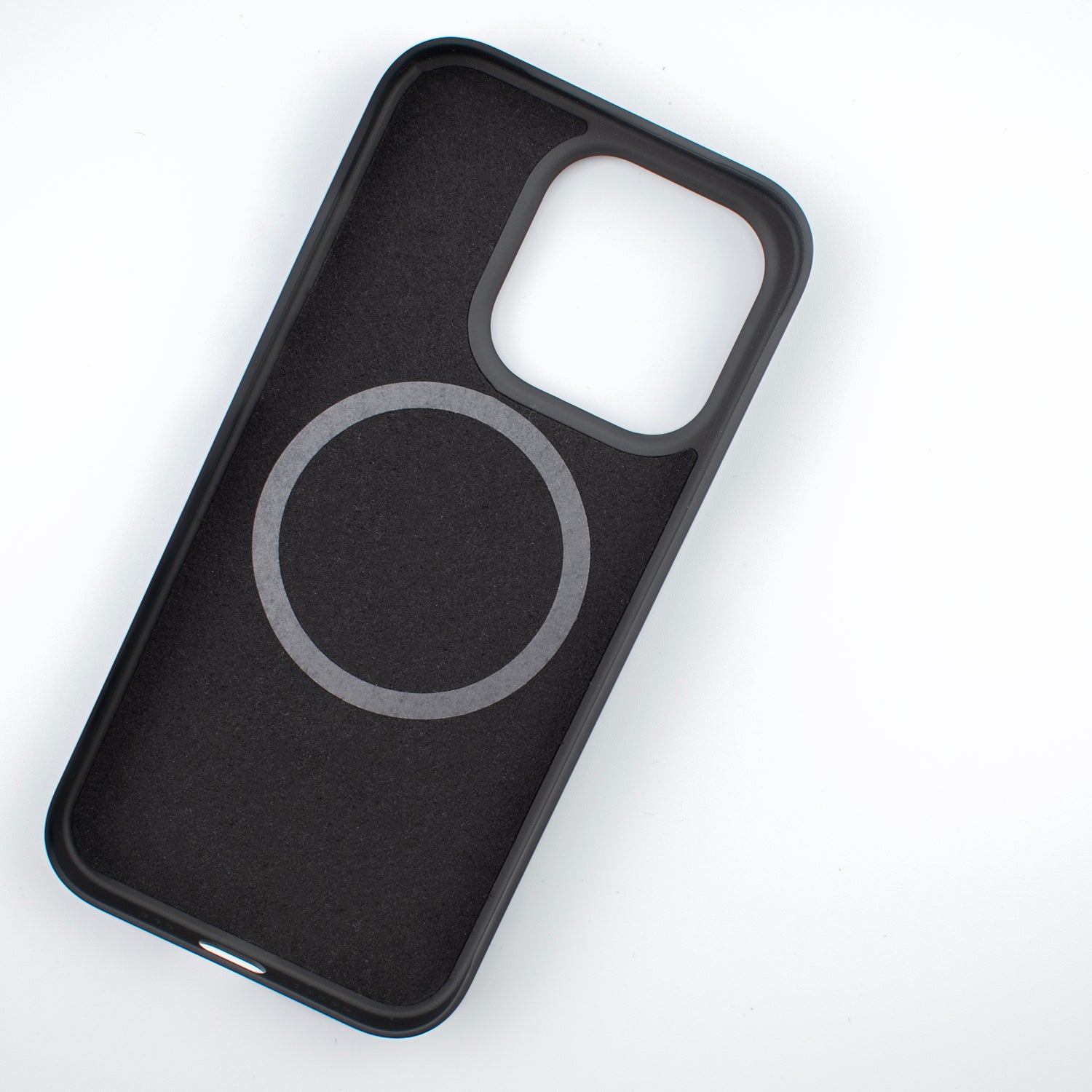 Inside our case is a soft microfiber layer that cradles your iPhone for extra protection and within that microfiber layer is our magnetic ring that offers MagSafe compatibility